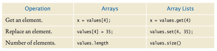 | Array | arr.length (this is an attribute, not a method, so no brackets after it) | arr[i] |